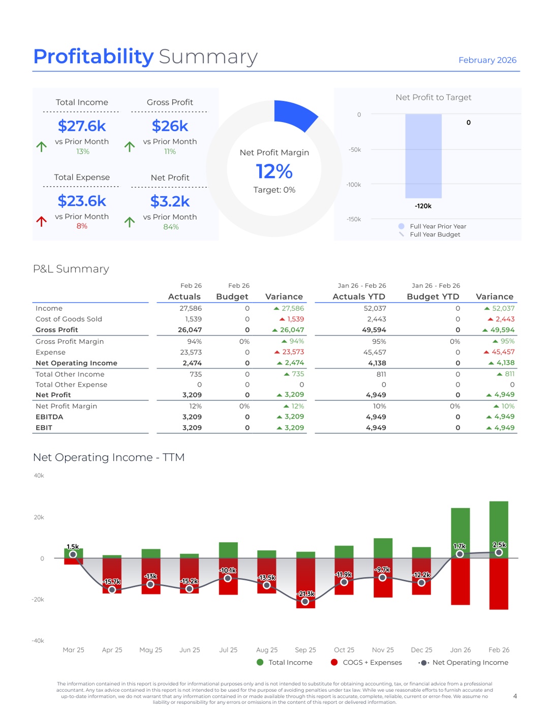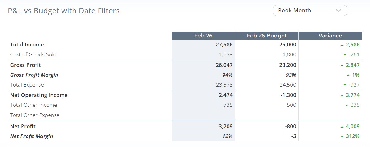 We compare your actuals to your plan every month and flag the gaps — so you can course-correct early instead of finding out at year-end.